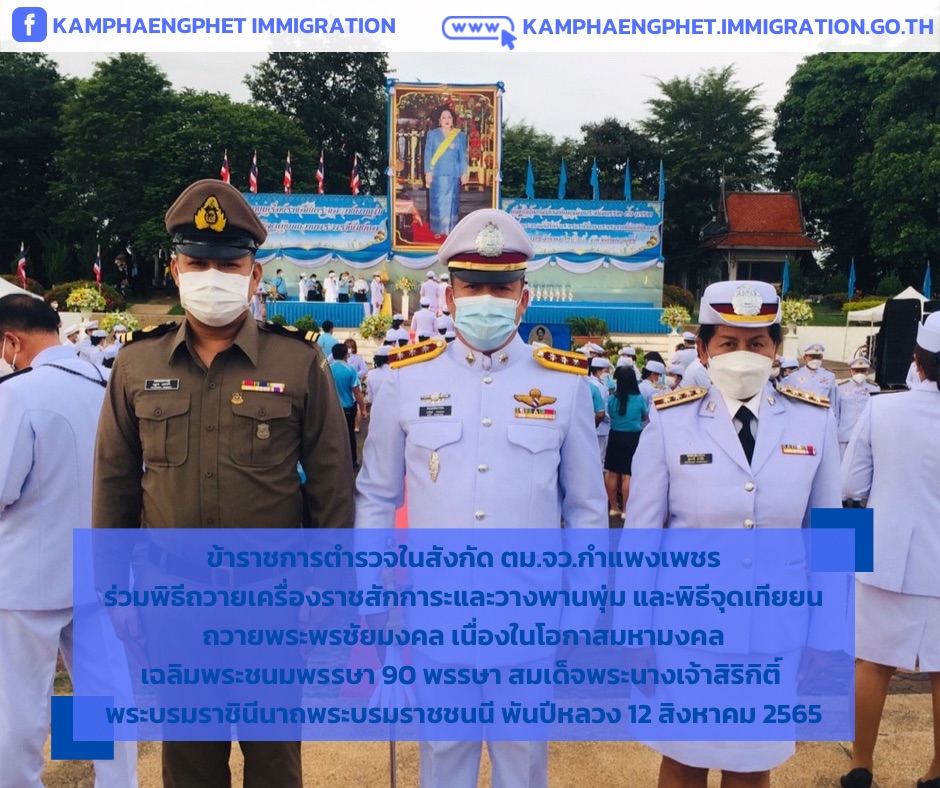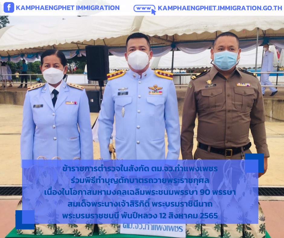 วันที่ 12 ส.ค.65 เวลา 18.00 น.พ.ต.ท.บดินทร์ แสงสิทธิศักดิ์ สว.ตม.จว.กำแพงเพชร นำข้าราชการตำรวจในสังกัด ตม.จว.กำแพงเพชร ร่วมพิธีถวา […]