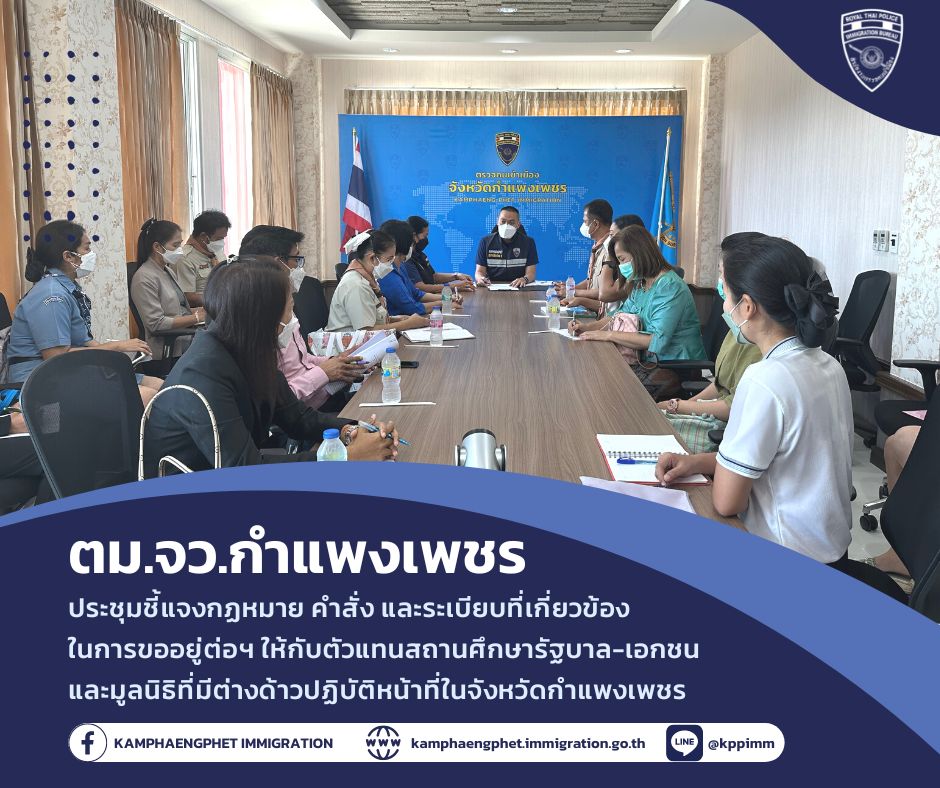 วันที่ 9 พฤศจิกายน 2565 เวลา 10.00 น. พ.ต.ท.บดินทร์ แสงสิทธิศักดิ์ สว.ตม.จว.กำแพงเพชร มอบหมายให้เจ้าหน้าที่งานบริการคนเข้าเมือง แล […]
