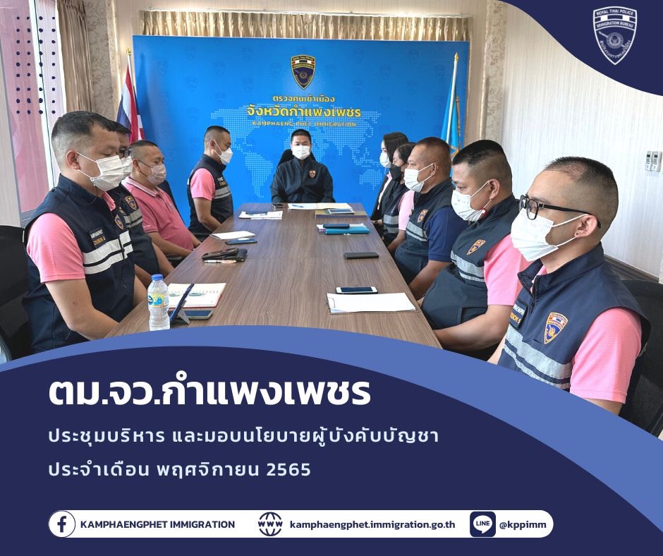 วันอังคารที่ 22 พฤศจิกายน พ.ศ.2565 เวลา 10.00 น. พ.ต.ท.บดินทร์ แสงสิทธิศักดิ์ สว.ตม.จว.กำแพงเพชร พร้อมเจ้าหน้าที่ในสังกัด จัดประชุ […]