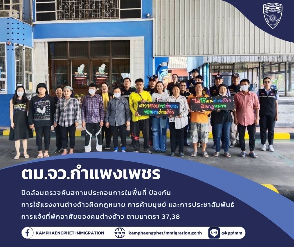 จากกรณีที่มีพลเมืองดี แจ้งเบาะแสร้องเรียนผ่านทาง Line Official ของ ตม.จว.กำแพงเพชร ให้ข้อมูลว่ามีคนต่างด้าวคาดว่าจะเป็นแรงงานต่างด […]