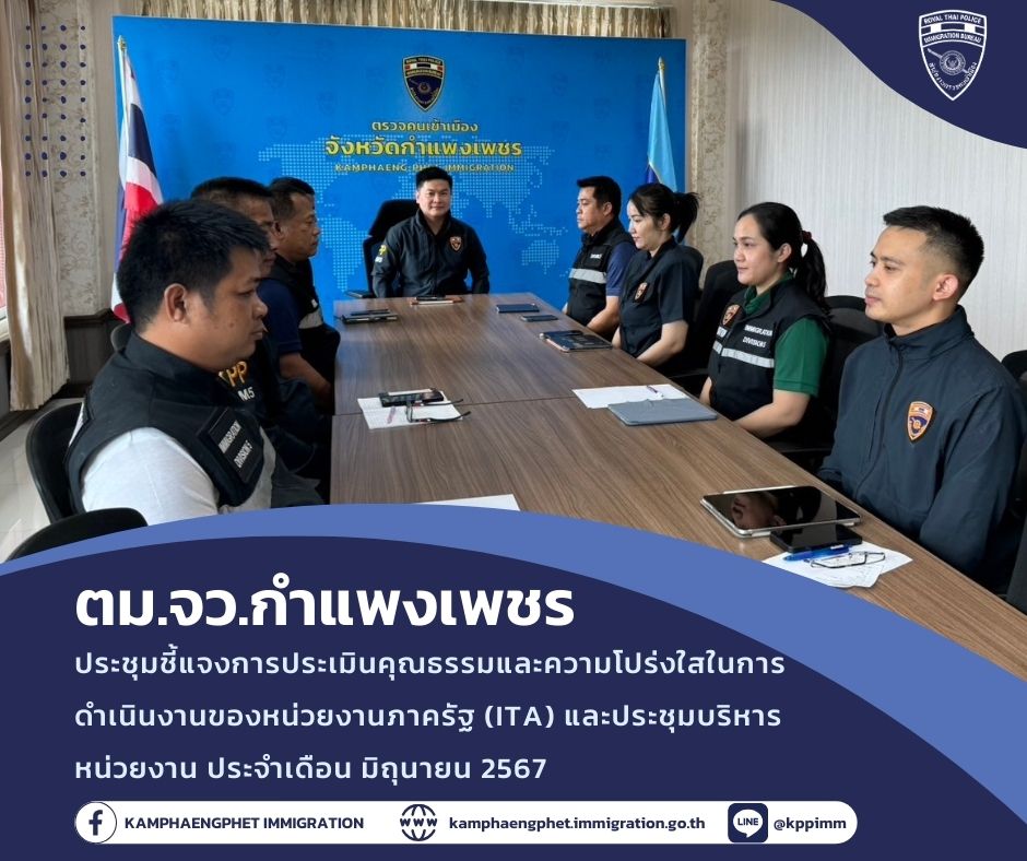 วันพุธที่ 5 มิถุนายน 2567 เวลา 16.30 น.พ.ต.ท.บดินทร์ แสงสิทธิศักดิ์ สว.ตม.จว.กำแพงเพชร ประชุมข้าราชการตำรวจในสังกัด เพื่อมอบนโยบาย […]