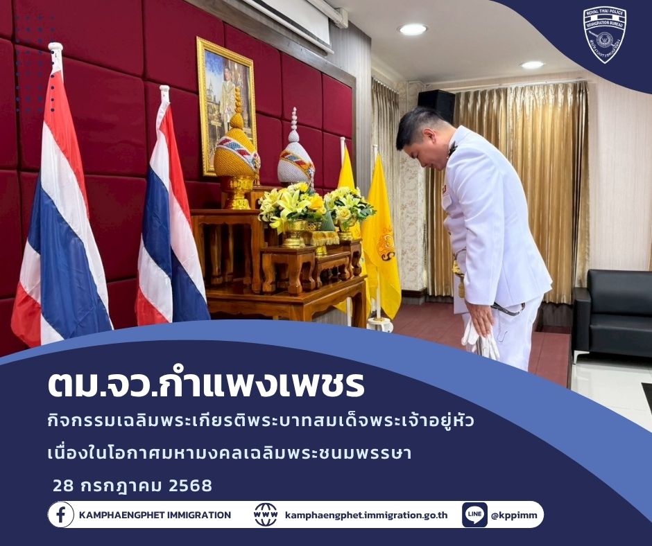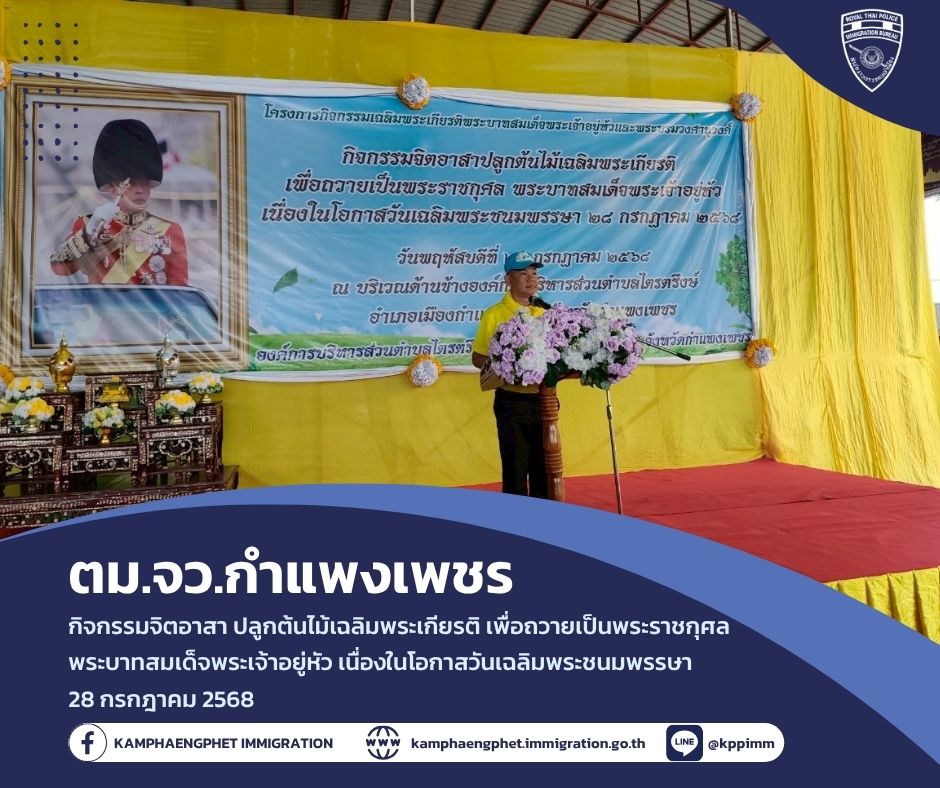 วันจันทร์ ที่ 28 กรกฎาคม พ.ศ.2568 เวลา 07.00 น. พ.ต.ท.บดินทร์ แสงสิทธิศักดิ์ สว.ตม.จว.กำแพงเพชร พร้อมด้วยข้าราชการตำรวจในสังกัด เข […]