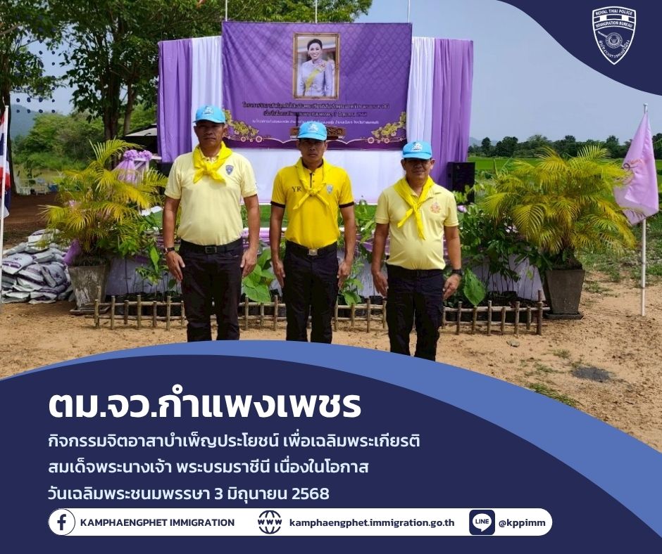 วันอังคารที่ 3 มิถุนายน พ.ศ.2568พ.ต.ท.บดินทร์ แสงสิทธิศักดิ์ สว.ตม.จว.กำแพงเพชร พร้อมด้วยข้าราชการตำรวจในสังกัด ร่วมกันจัดกิจกรรมเ […]