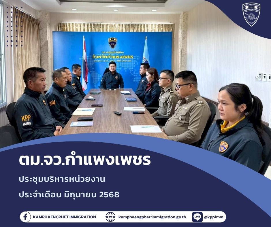 วันจันทร์ ที่ 16 มิถุนายน พ.ศ.2568 เวลา 16.30 น.พ.ต.ท.บดินทร์ แสงสิทธิศักดิ์ สว.ตม.จว.กำแพงเพชร ประชุมร่วมกับข้าราชการตำรวจในสังกั […]
