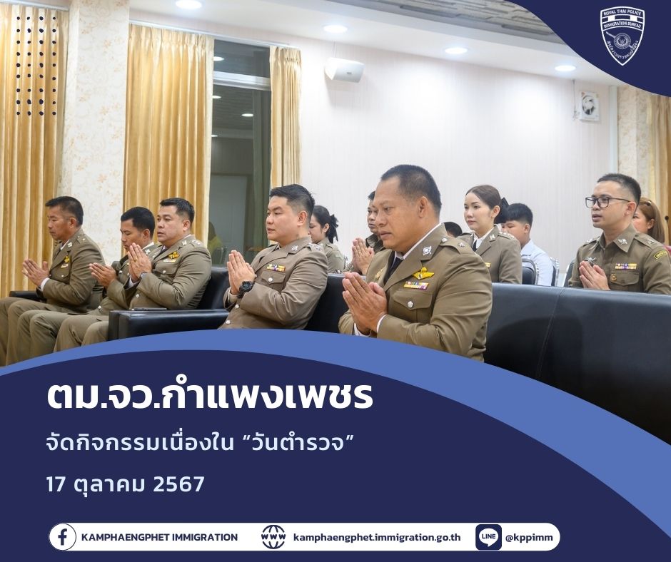 วันพฤหัสบดีที่ 17 ตุลาคม 2567 เวลา 10.00 น. พ.ต.ท.บดินทร์ แสงสิทธิศักดิ์ สว.ตม.จว.กำแพงเพชร เข้าร่วมกิจกรรมทำบุญ เนื่องในวันตำรวจ […]