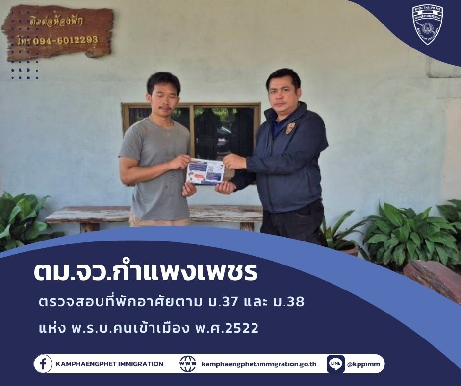 วันศุกร์ที่ 7 กุมภาพันธ์ พ.ศ.2568 เวลาประมาณ 11.00 น. พ.ต.ท.บดินทร์ แสงสิทธิศักดิ์ สว.ตม.จว.กำแพงเพชร สั่งการให้ชุดสืบสวน ตม.จว.กำ […]