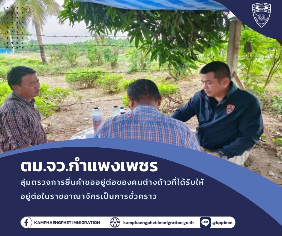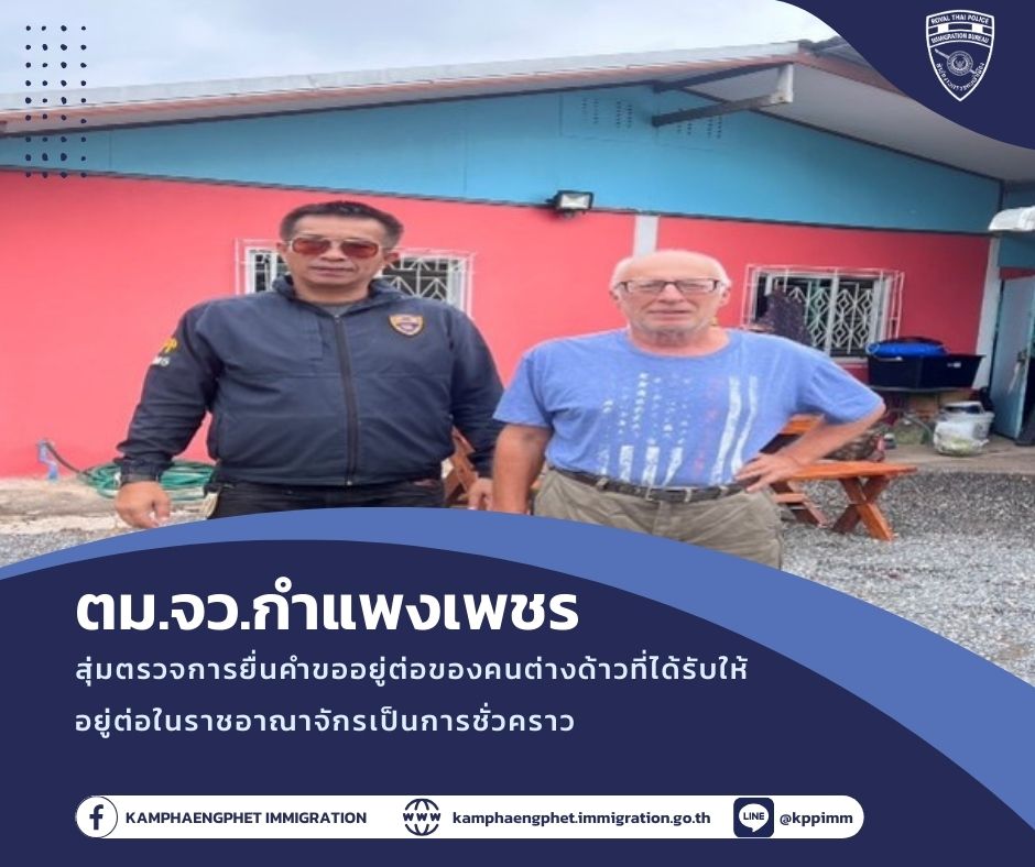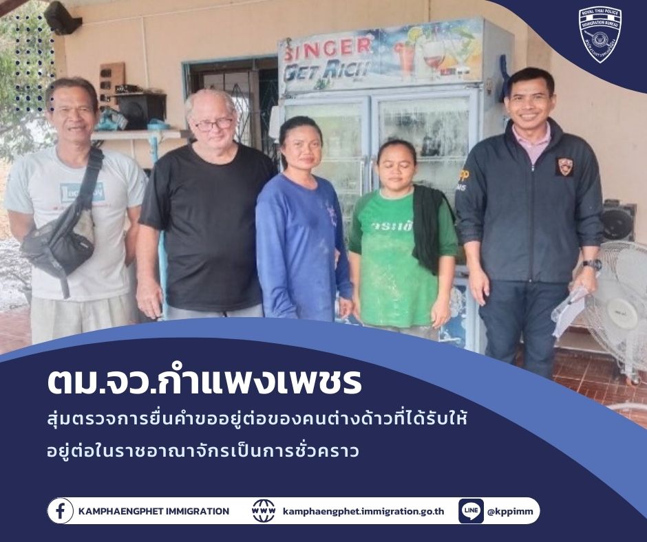 วันอังคารที่ 14 มกราคม พ.ศ.2568 เวลา 13.30 น.พ.ต.ท.บดินทร์ แสงสิทธิศักดิ์ สว.ตม.จว.กำแพงเพชร มอบหมายให้ เจ้าหน้าที่งานบริการคนต่าง […]